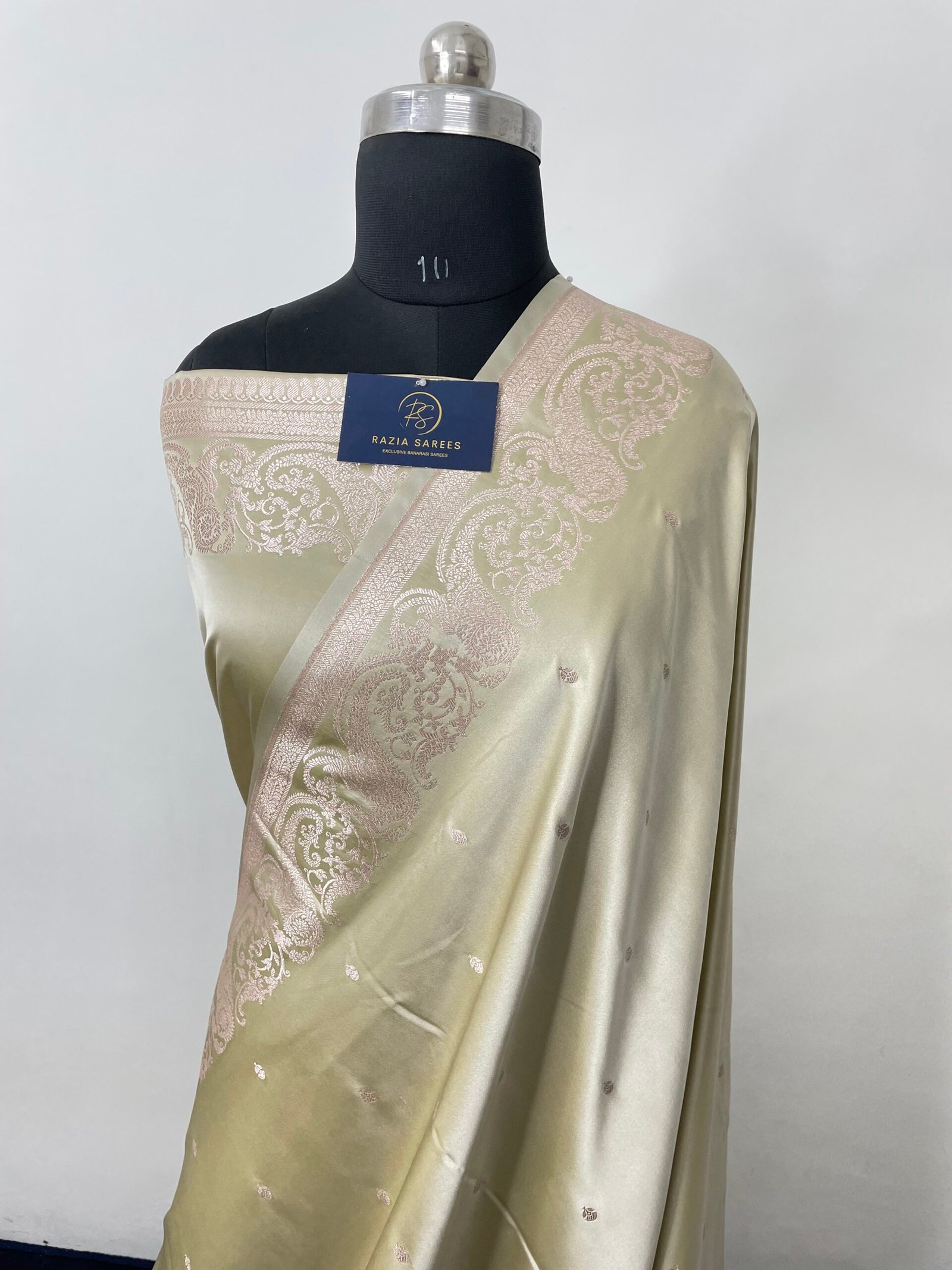 Baby Ivory Tussar Mashru Katan Silk Saree