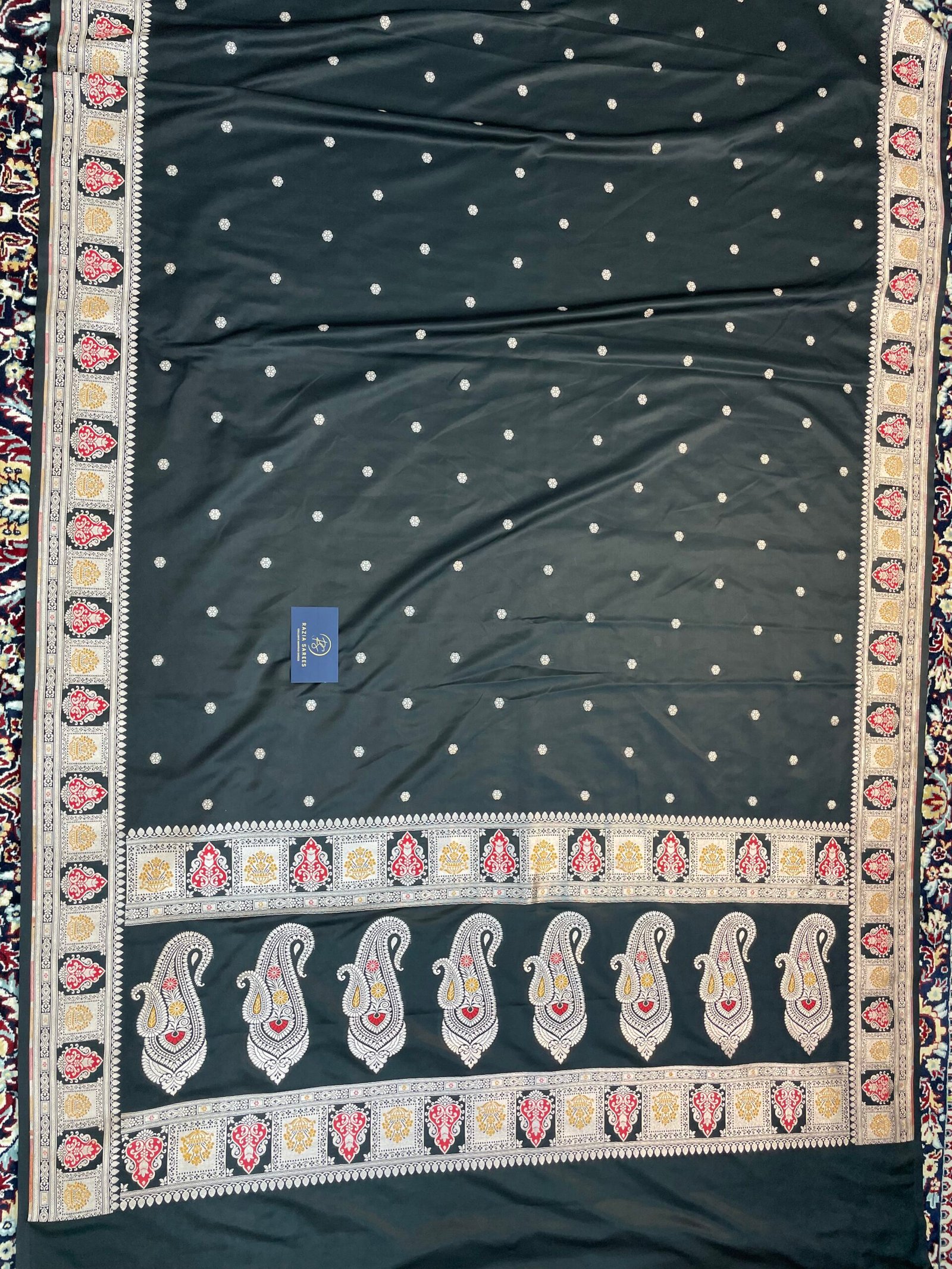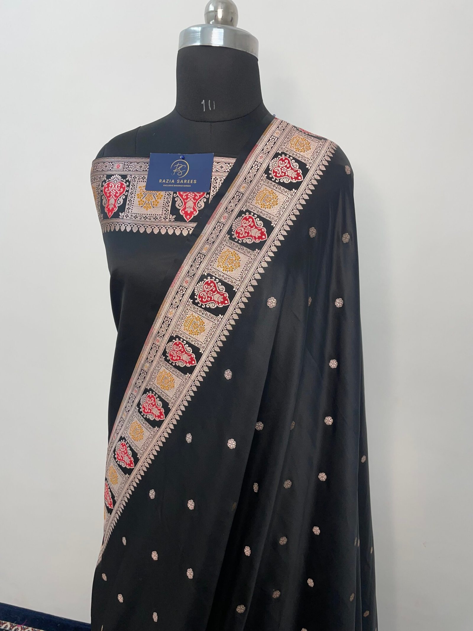 Black Booti Meena Mashru Katan Silk Saree