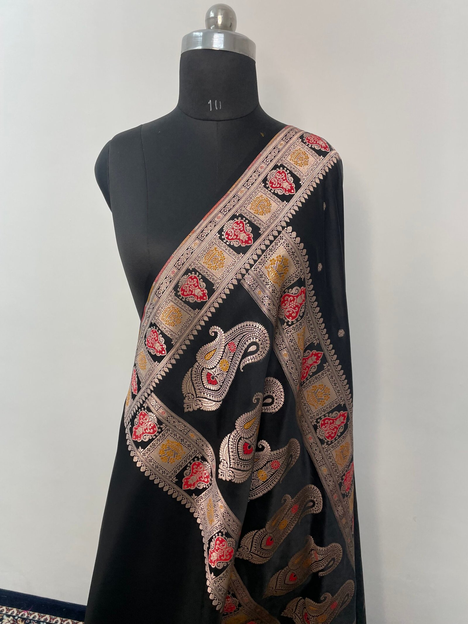 Ironing: If you need to iron the saree, do so at a low heat setting and cover the suit with a press cloth to protect it. Avoid using a hot iron as it can damage the banarasi saree.
