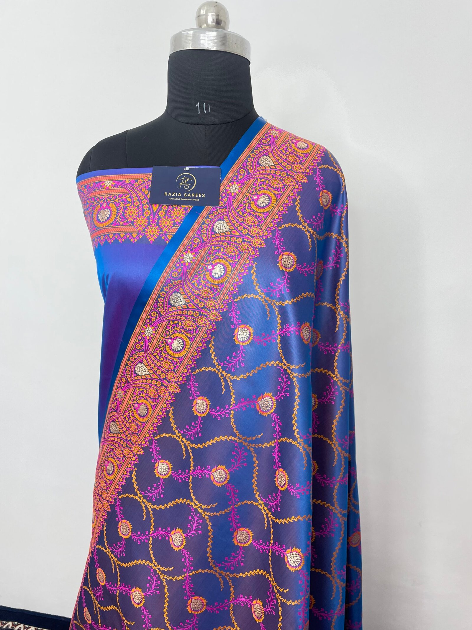 Liril Blue Tilfi Jamawar Mashru Katan Silk Saree