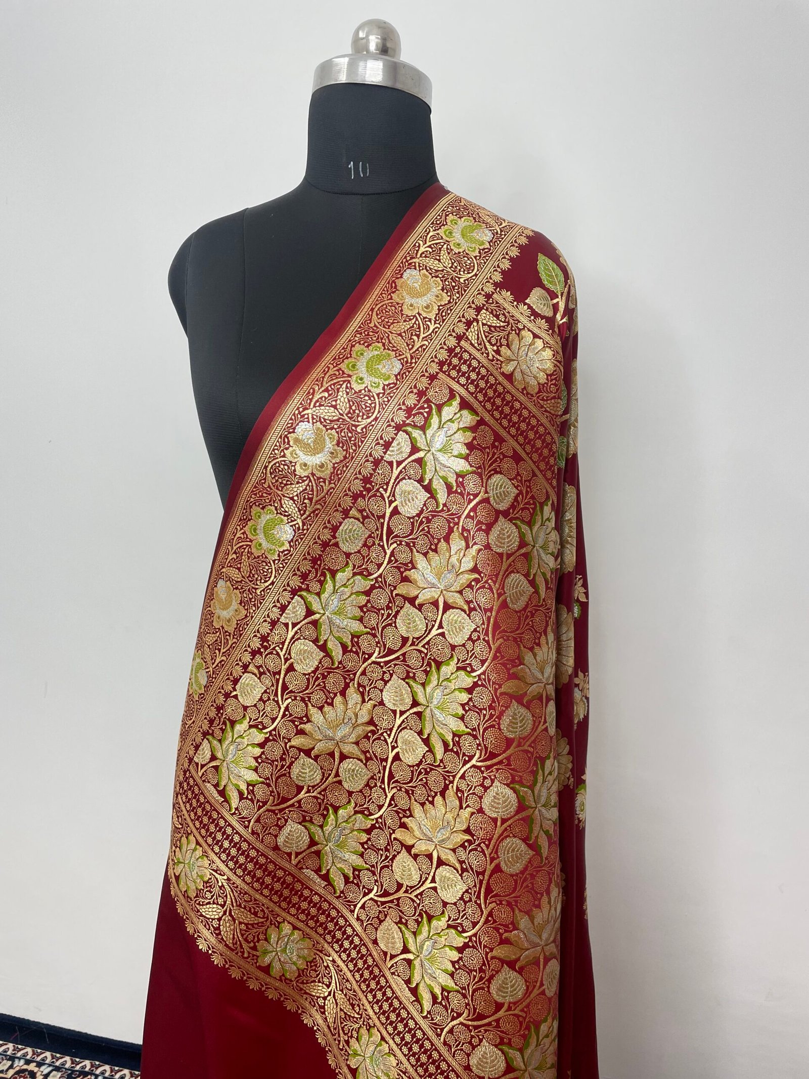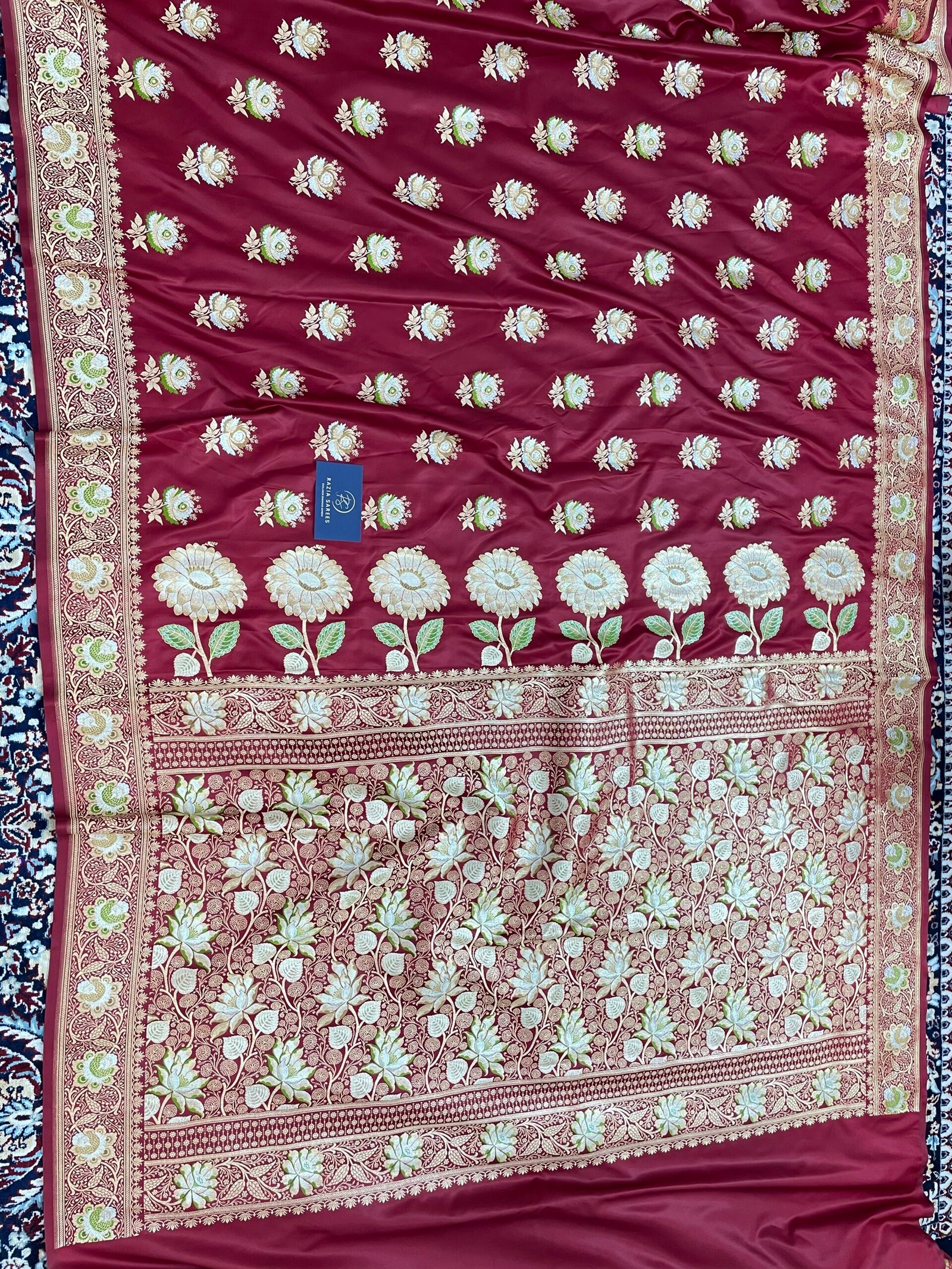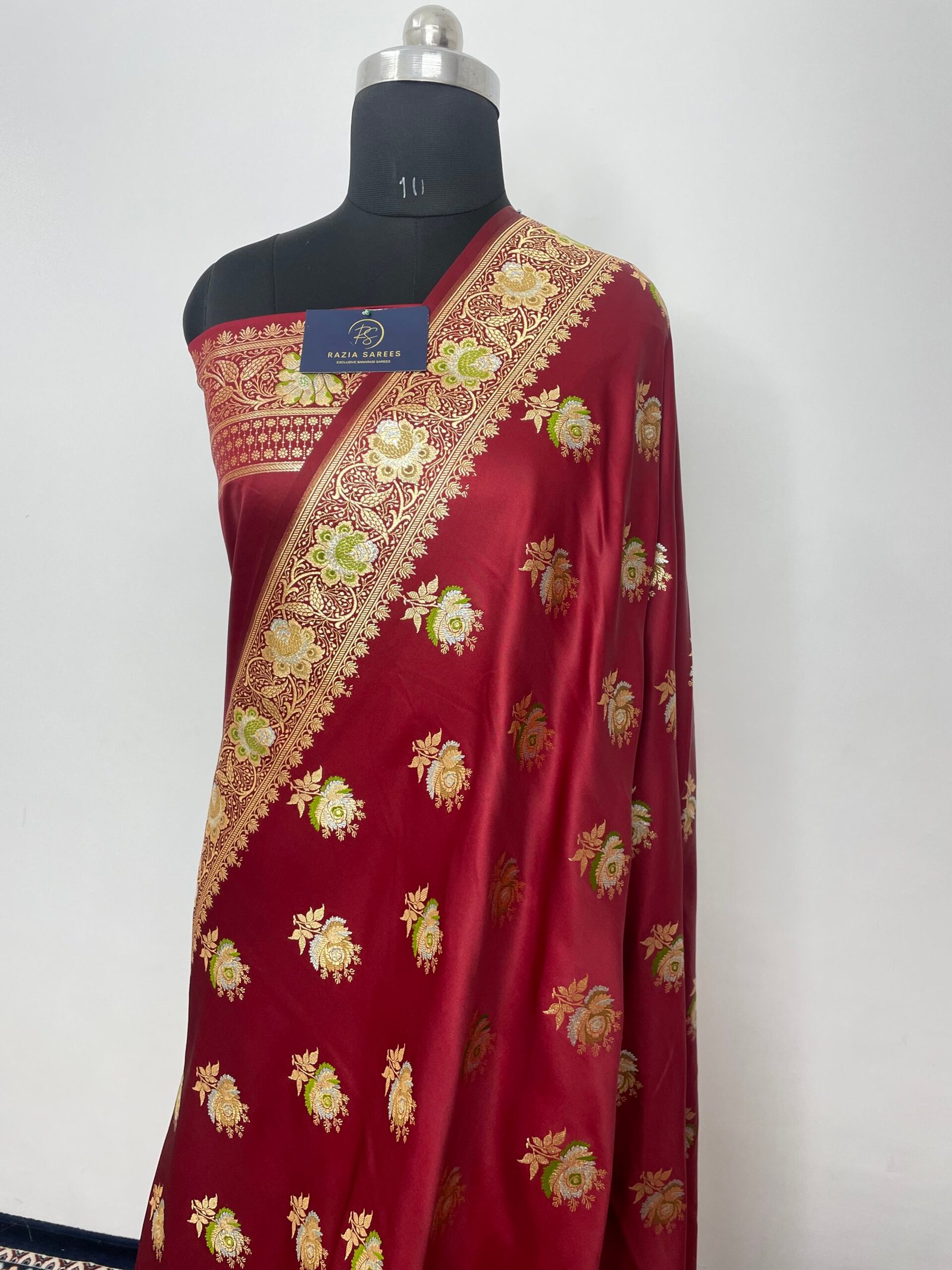 Mehroon Designer Meenakari Boota Satin Katan Silk Saree