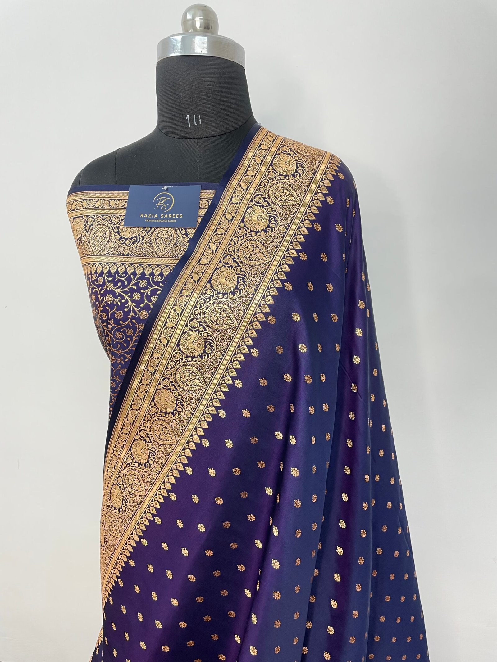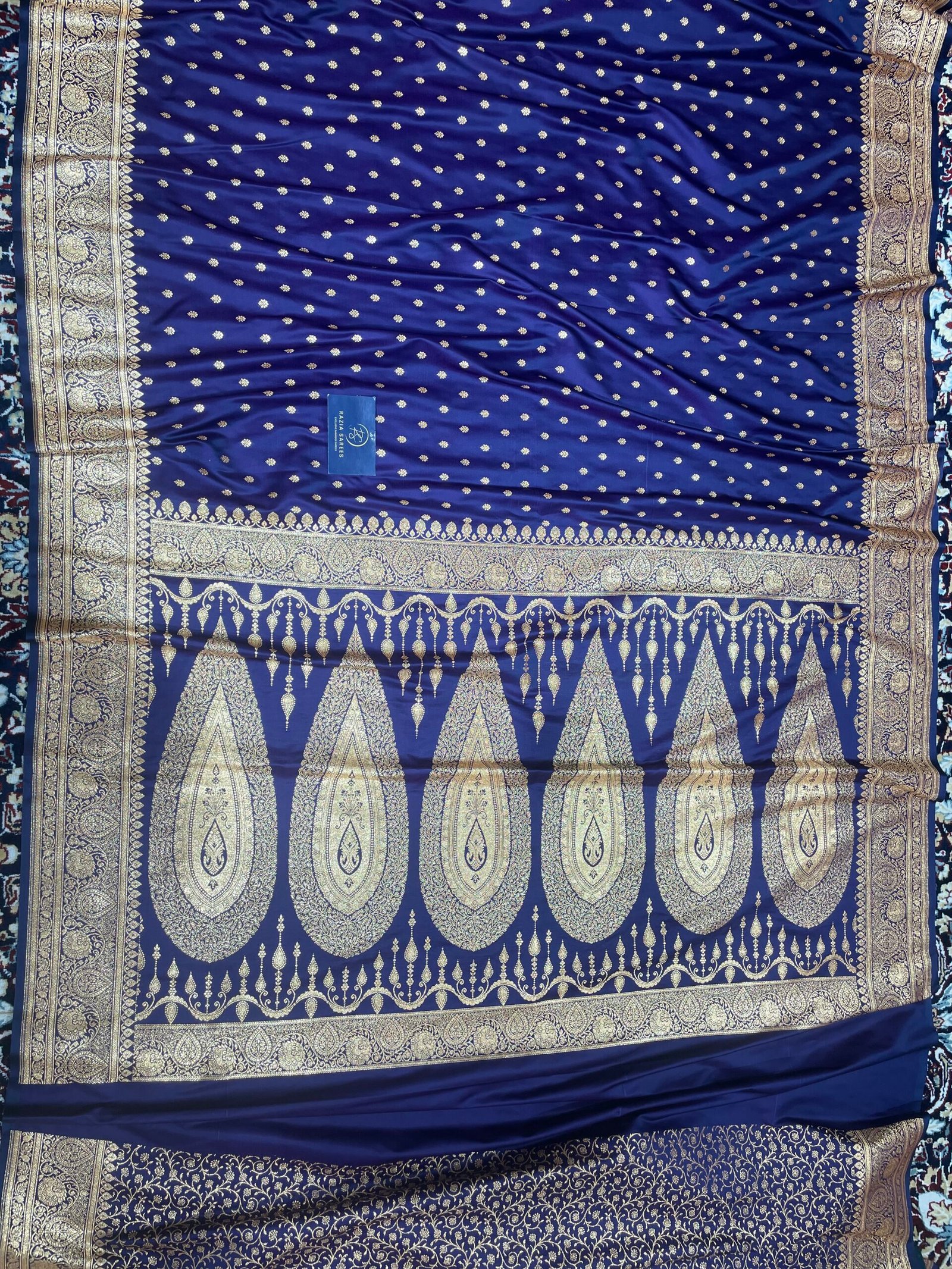 A9. Navy Blue Booti Satin Katan Silk Saree