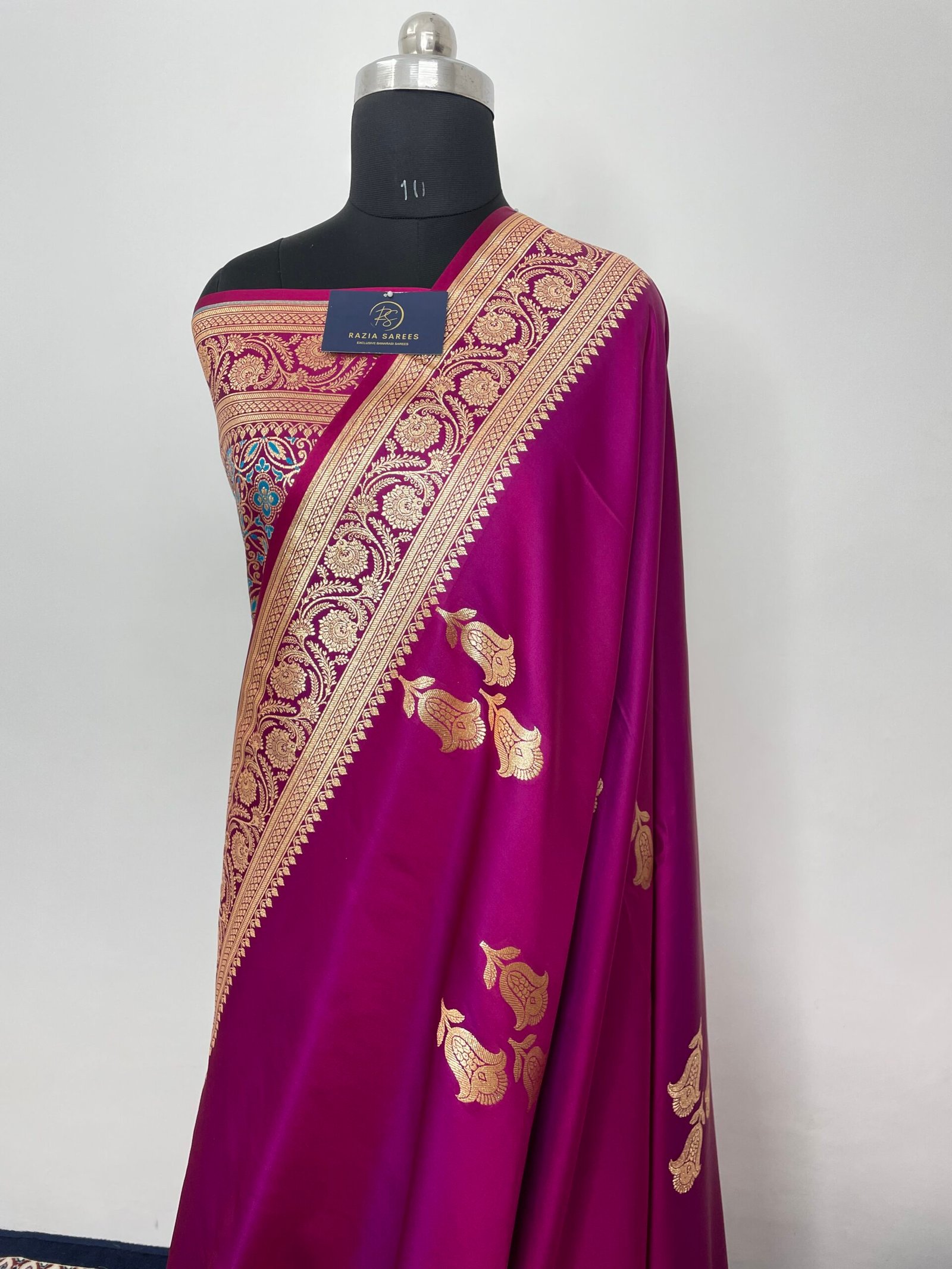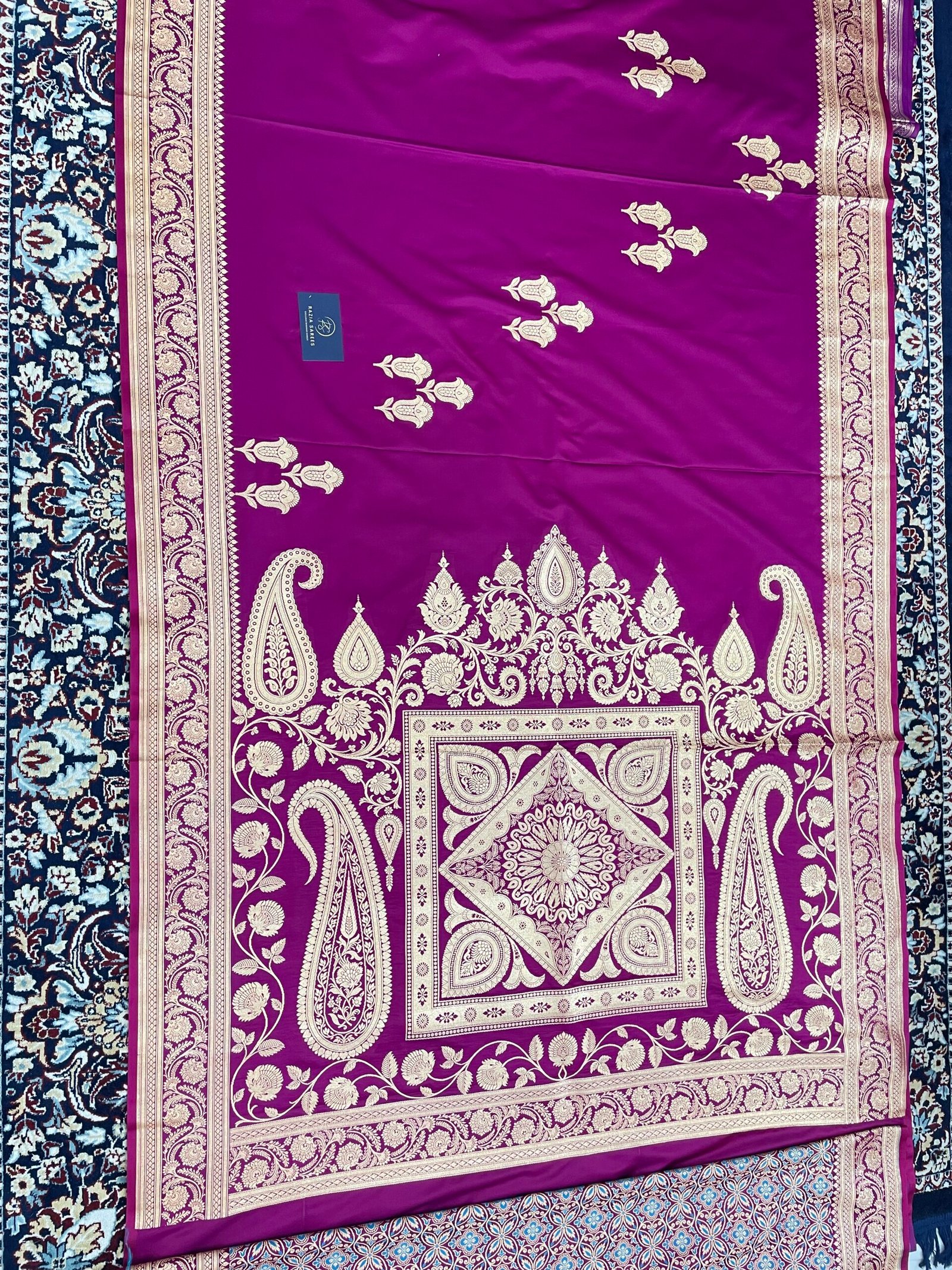 Purple Memory Jacart Designer Satin Katan Silk Saree