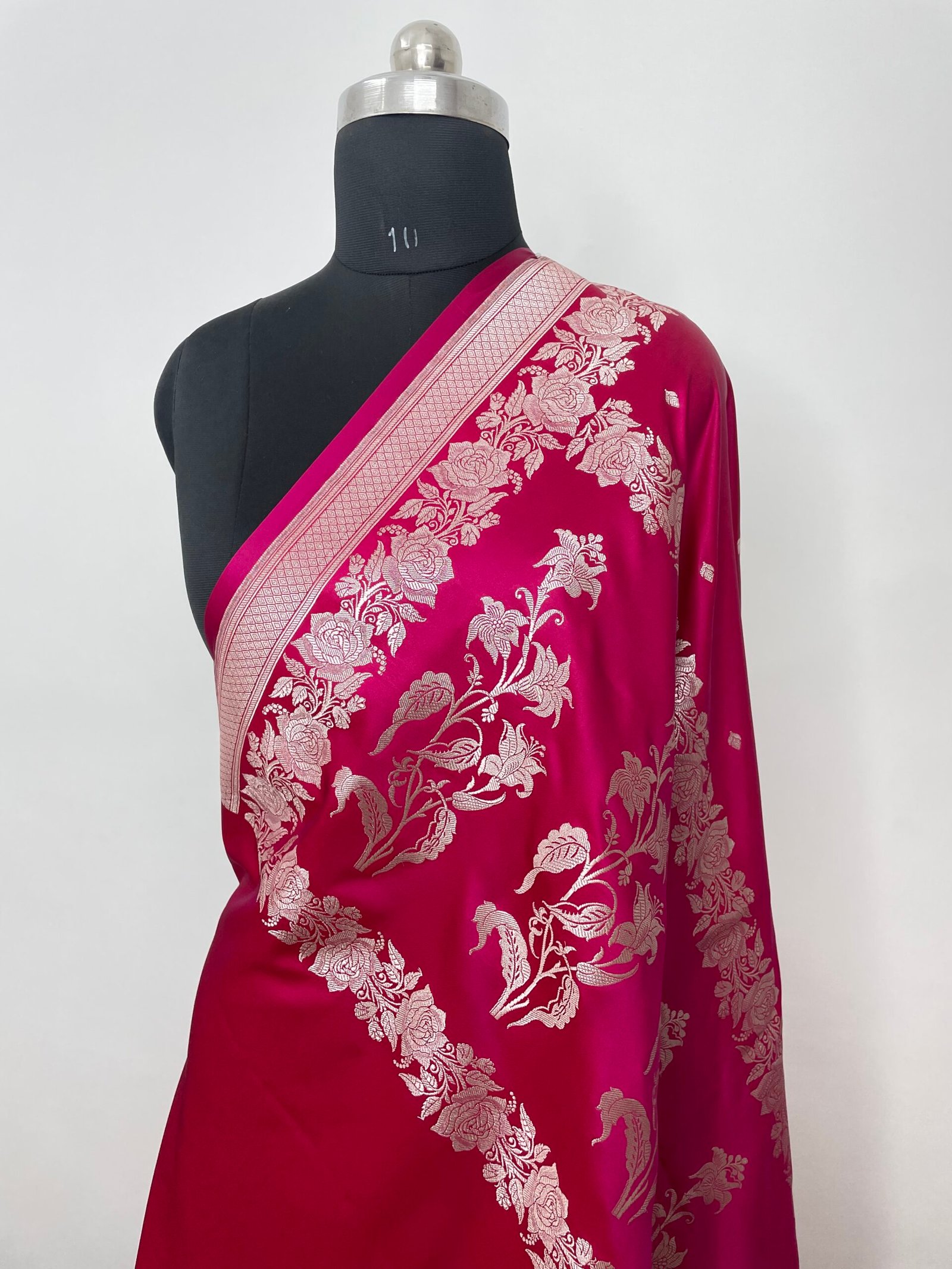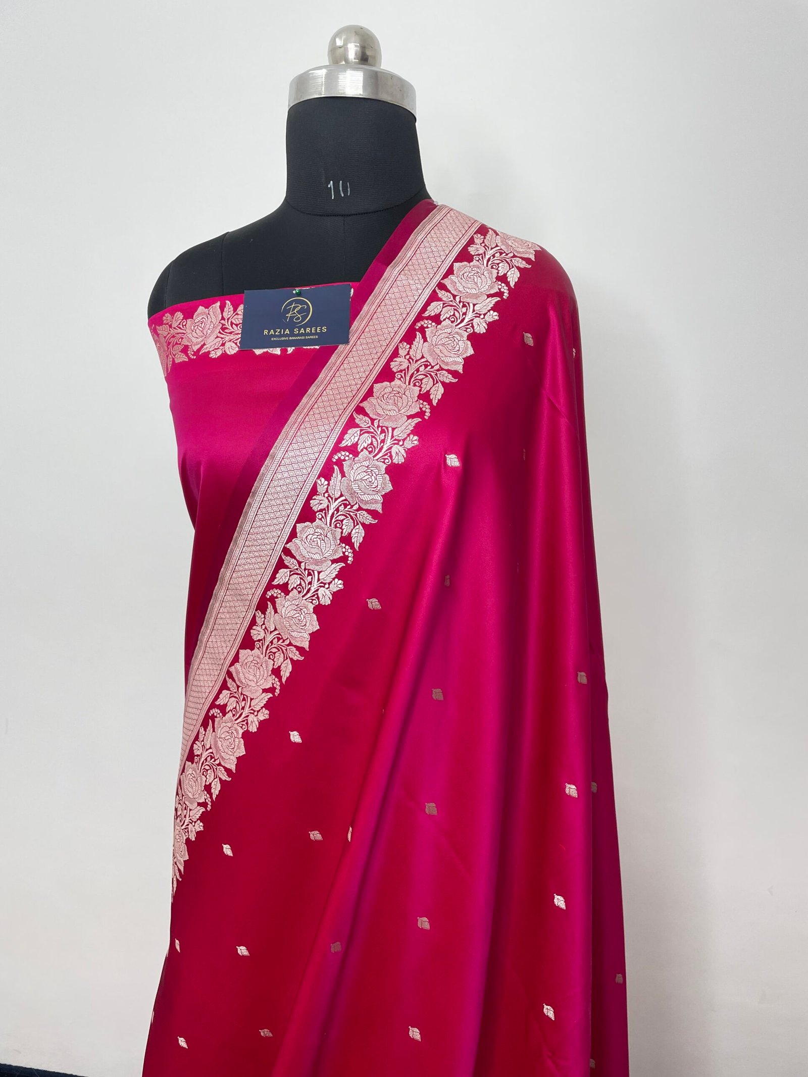 Rani Pink Designer Booti Mashru Katan Silk Saree