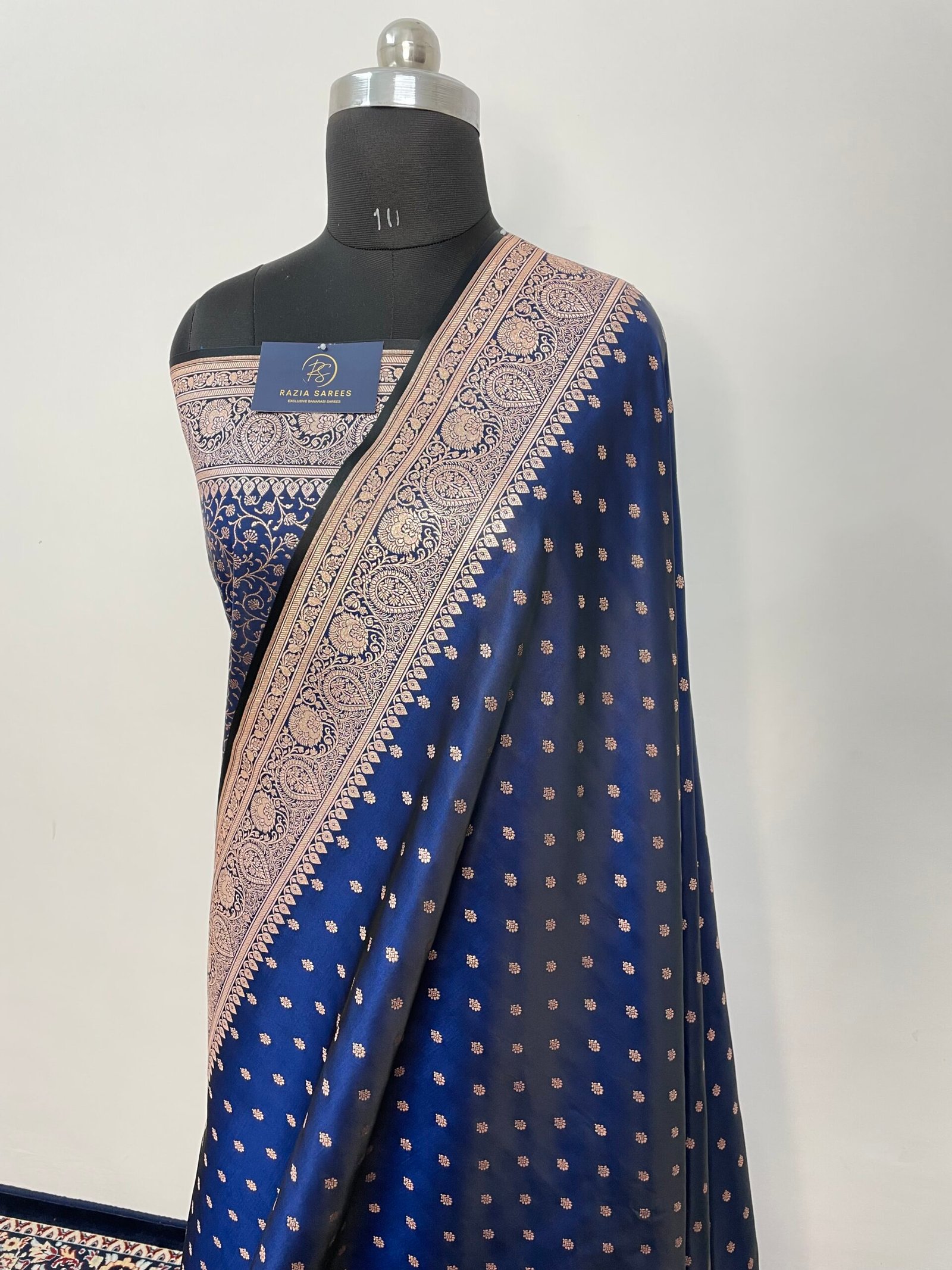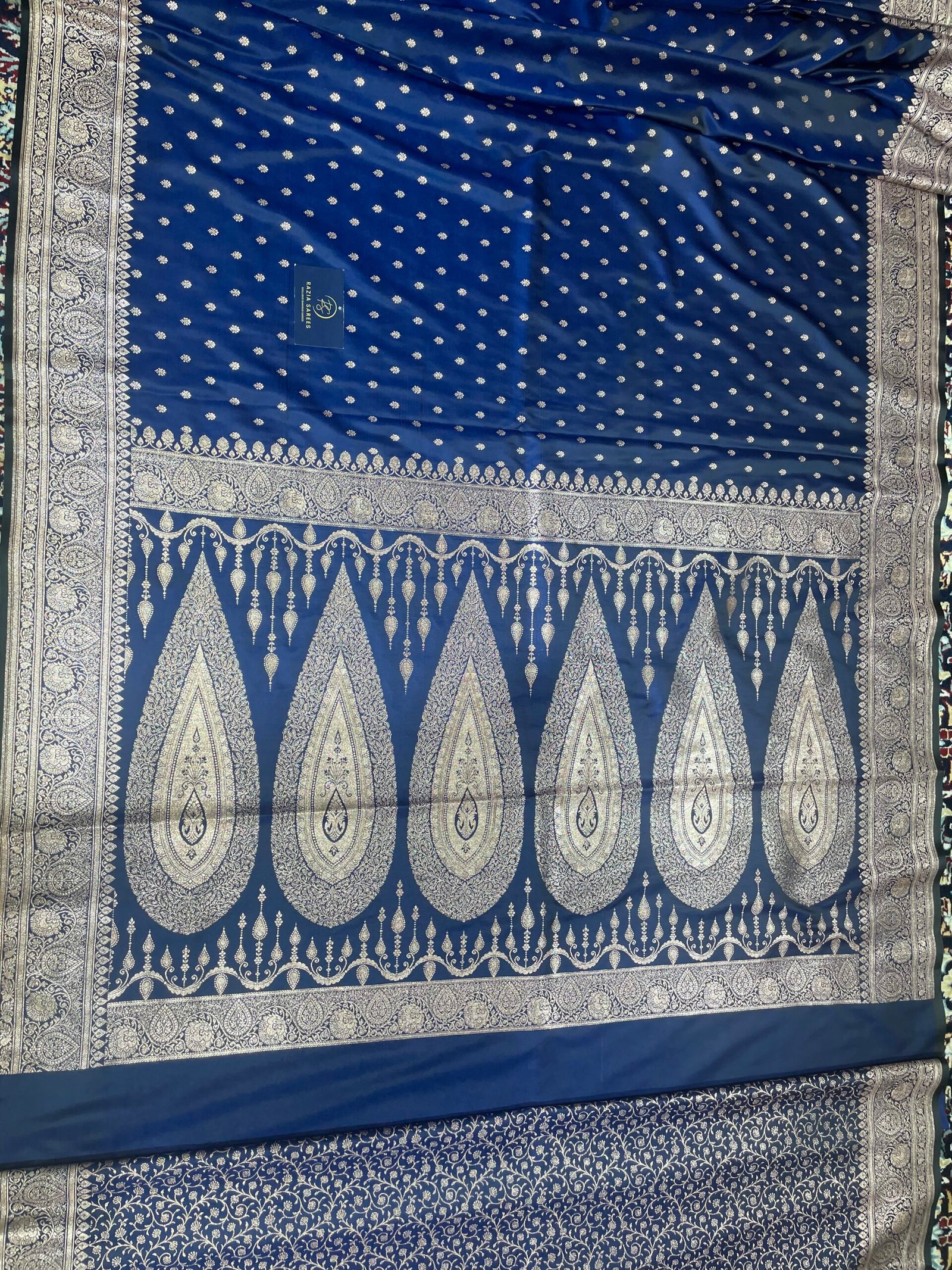 B. Royal Blue Booti Satin Katan Silk Saree