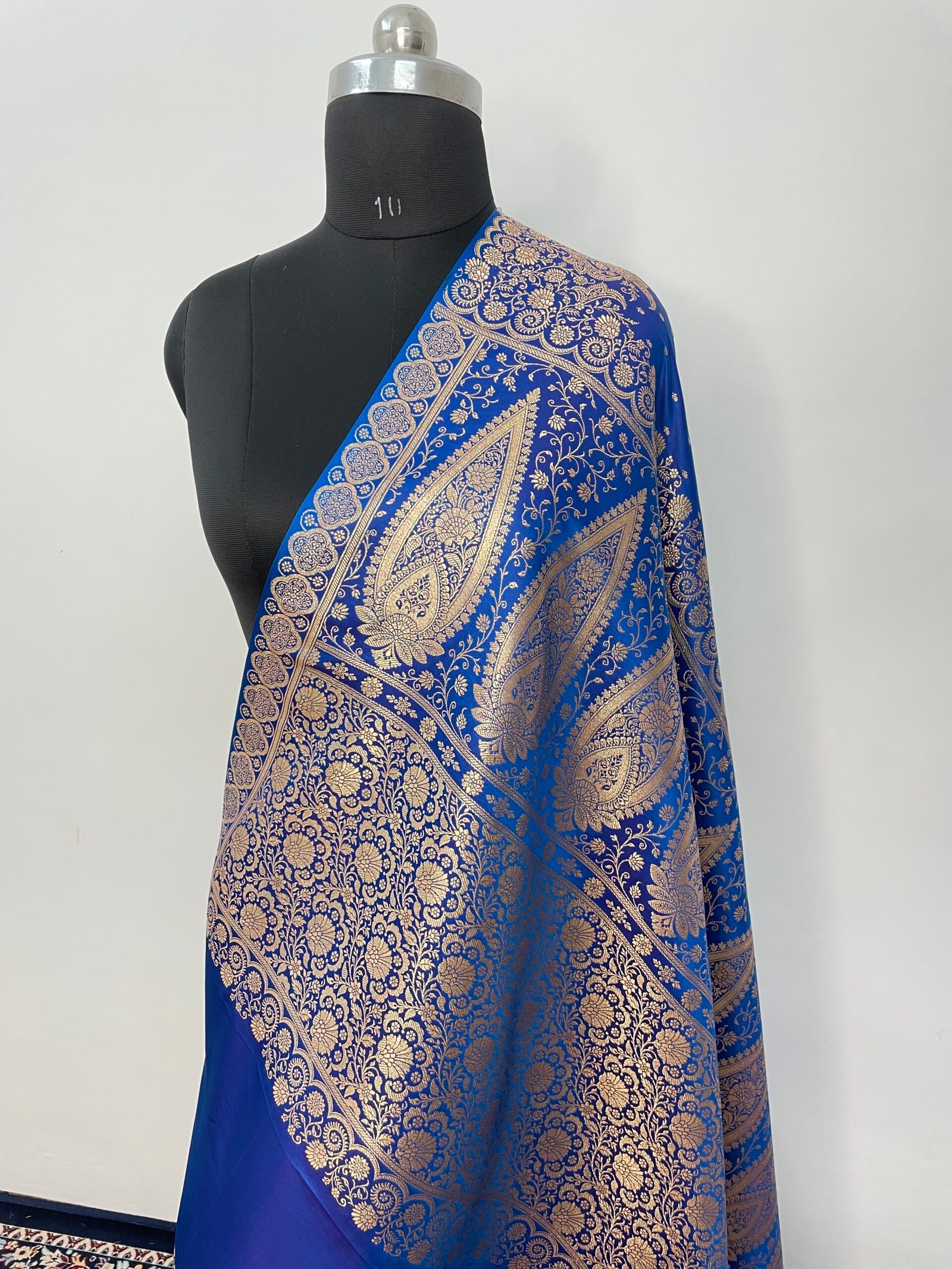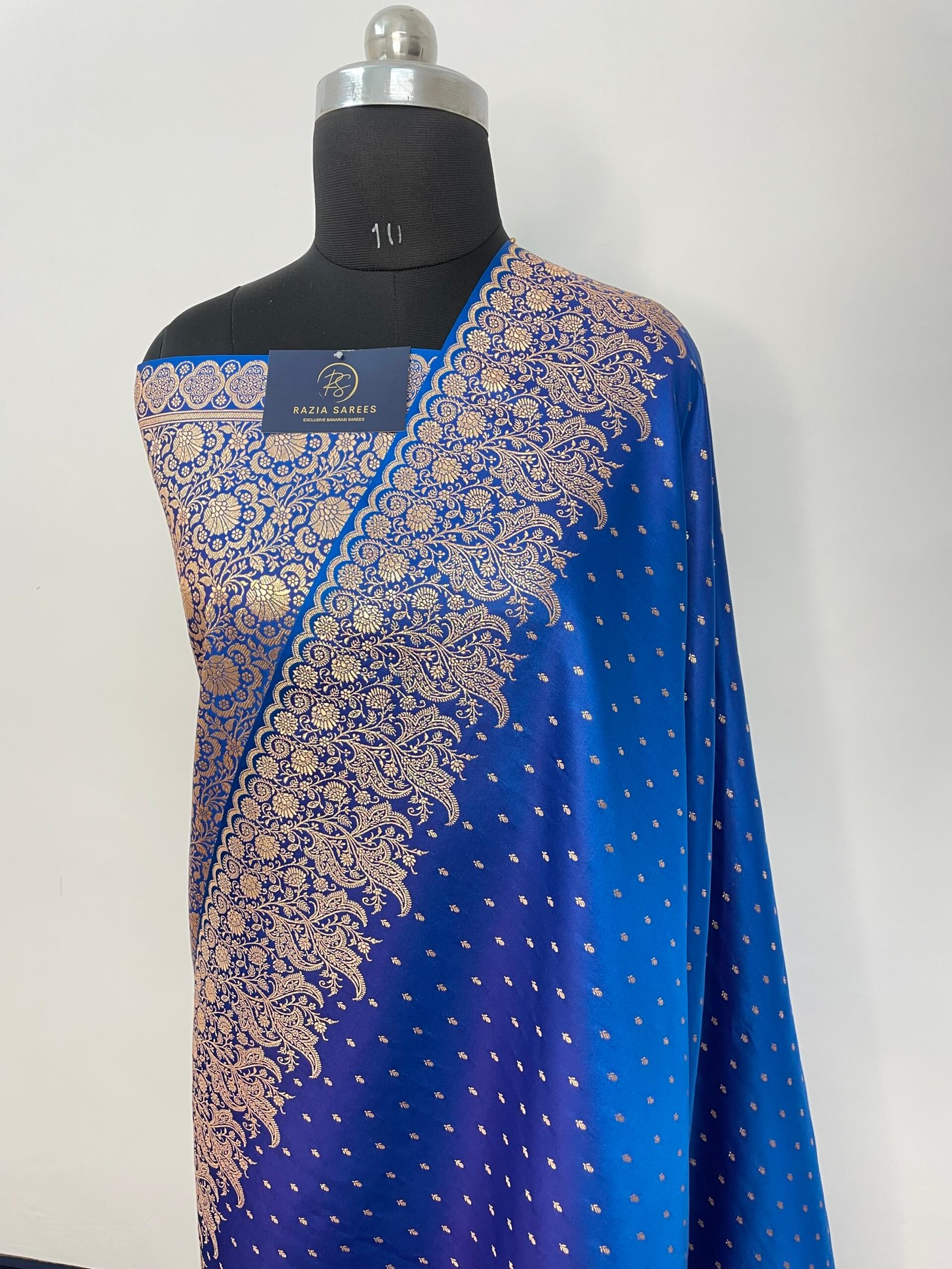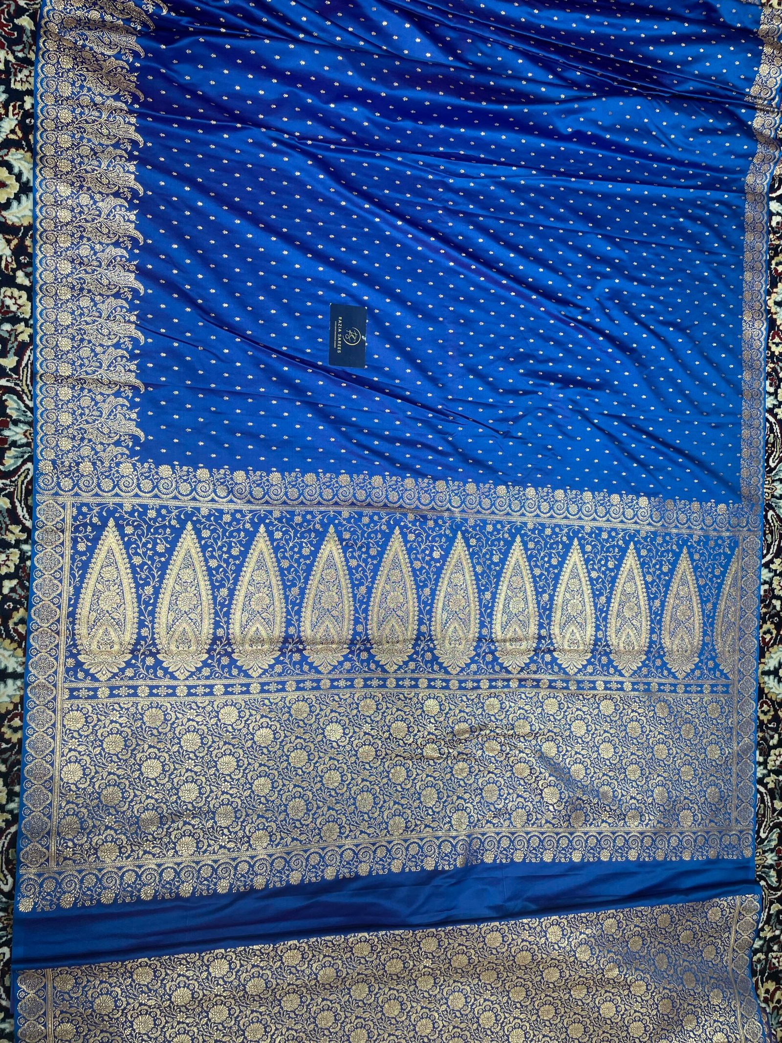 A. Royal Blue Designer Booti Satin Katan Silk Saree