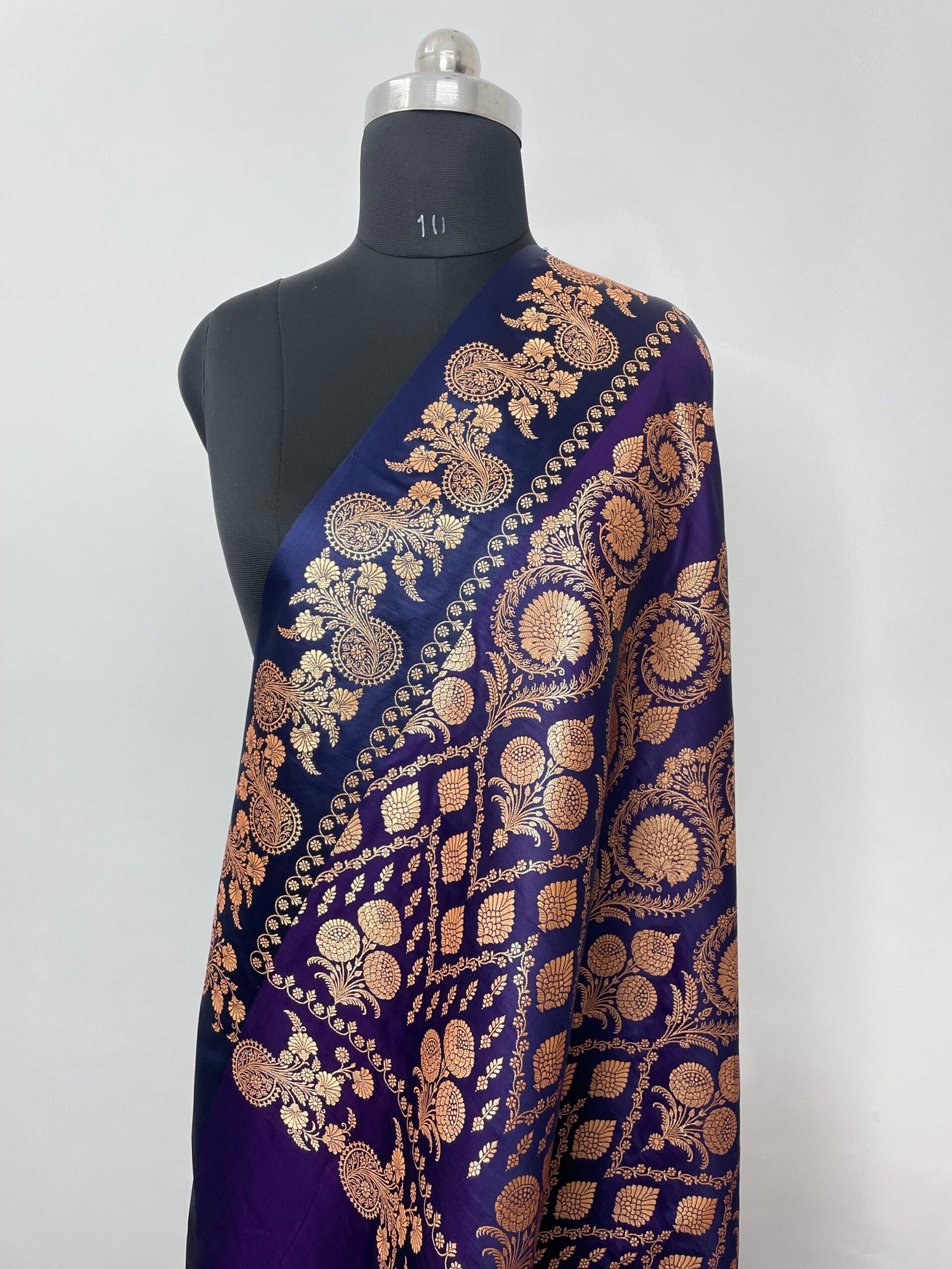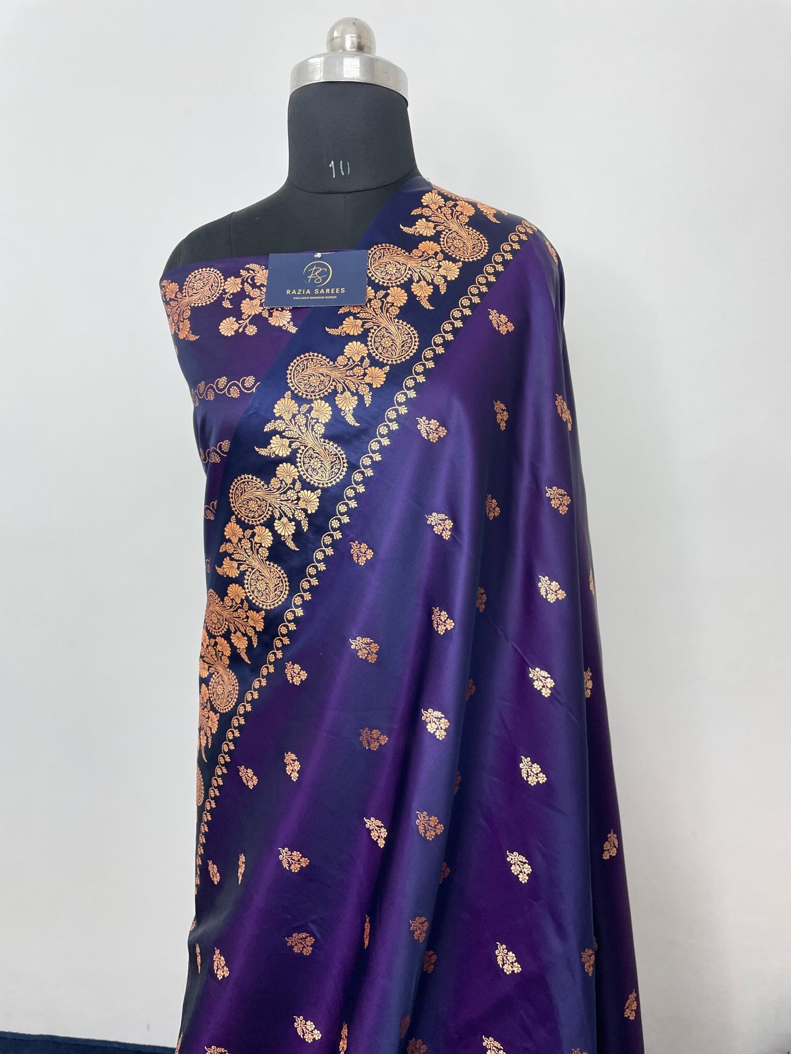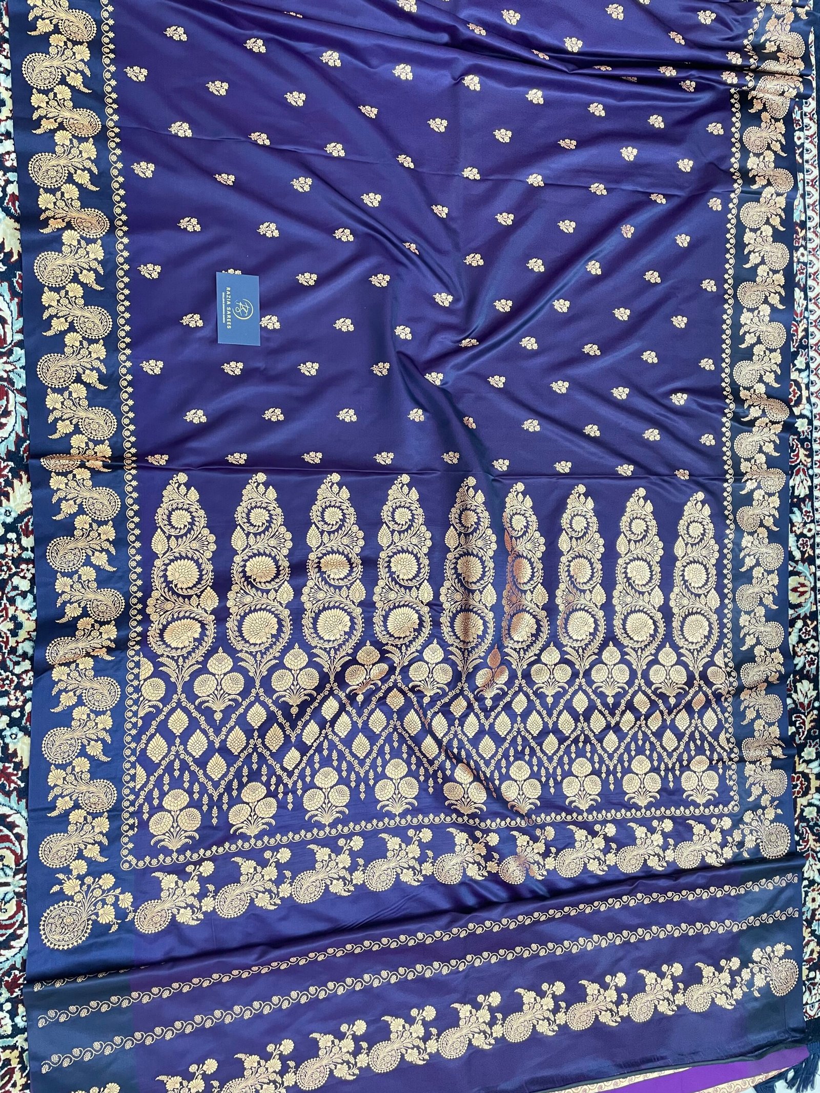 Royal Blue Fancy Satan Patta Buti Satin Katan Silk Saree