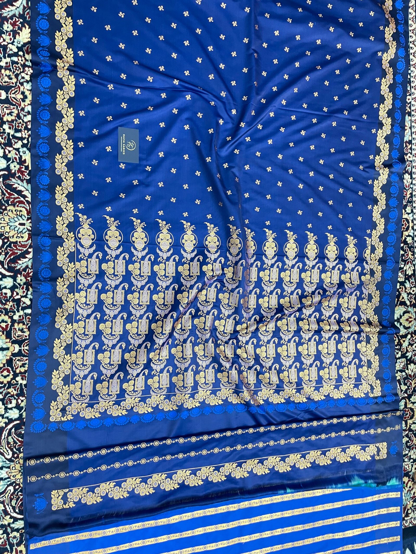 Be the first to review “Royal Blue Fancy Satan Patta Buti Satin Katan Silk Saree”