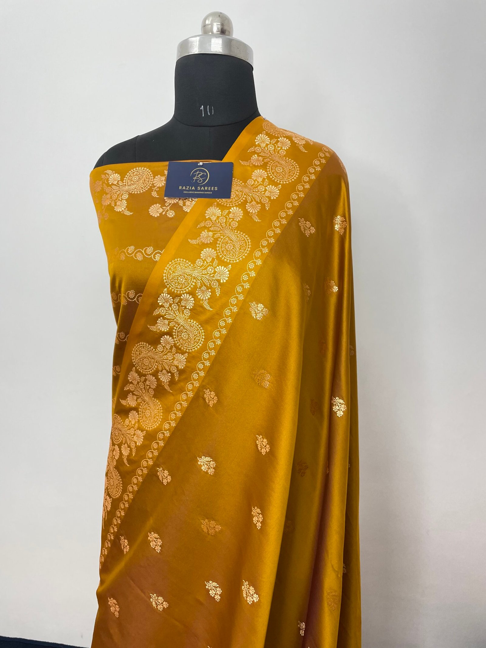 Rust Fancy Satan Patta Buti Satin Katan Silk Saree
