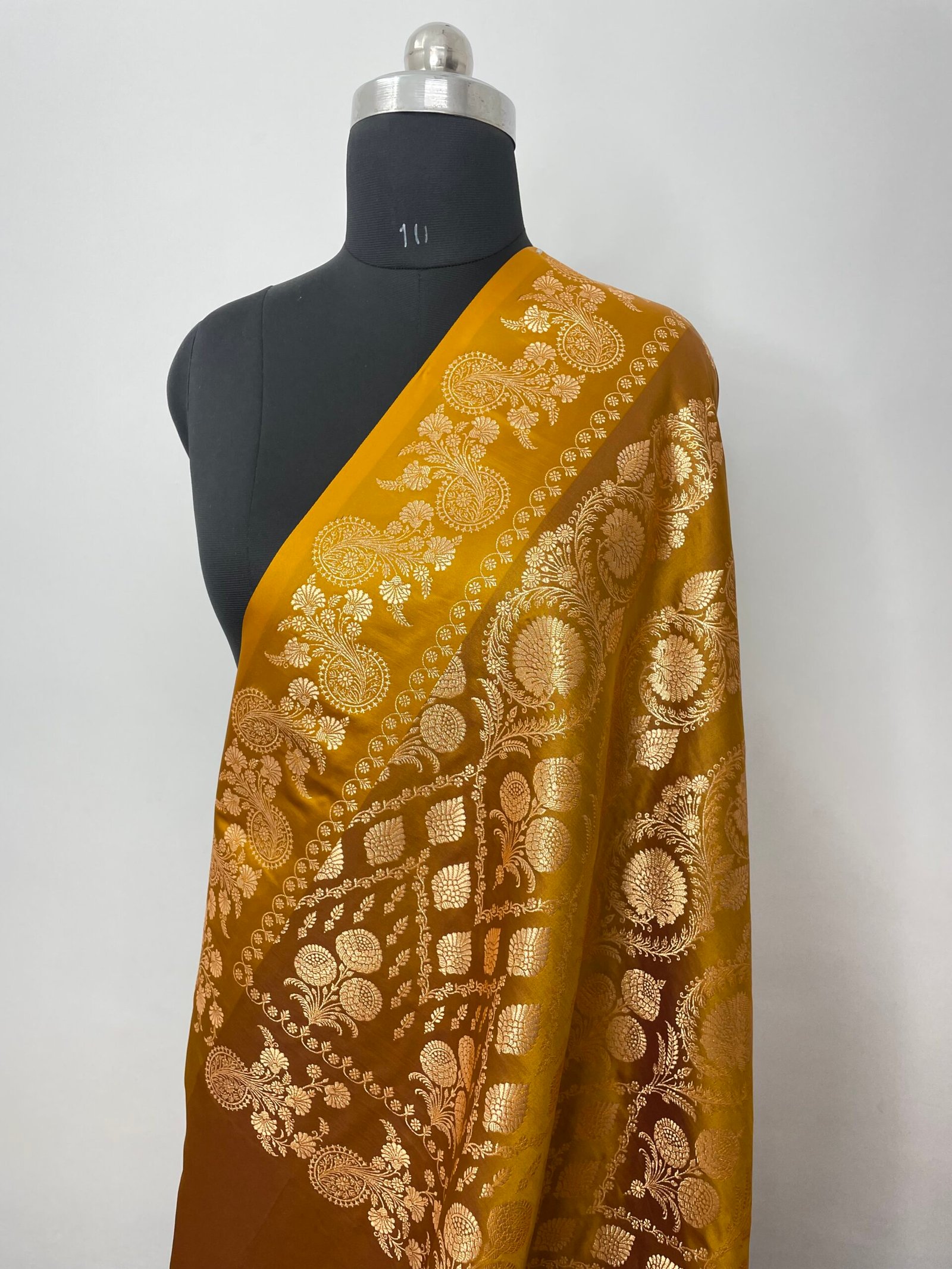 Delivered in 4 DaysThe Rust Fancy Satin Katan Silk Banarasi Saree showcases exquisite craftsmanship with rich banarasi zari on fine Katan silk. Its vibrant shade and elegant texture make it perfect for special occasions, combining traditional artistry with lasting quality and graceful drape.