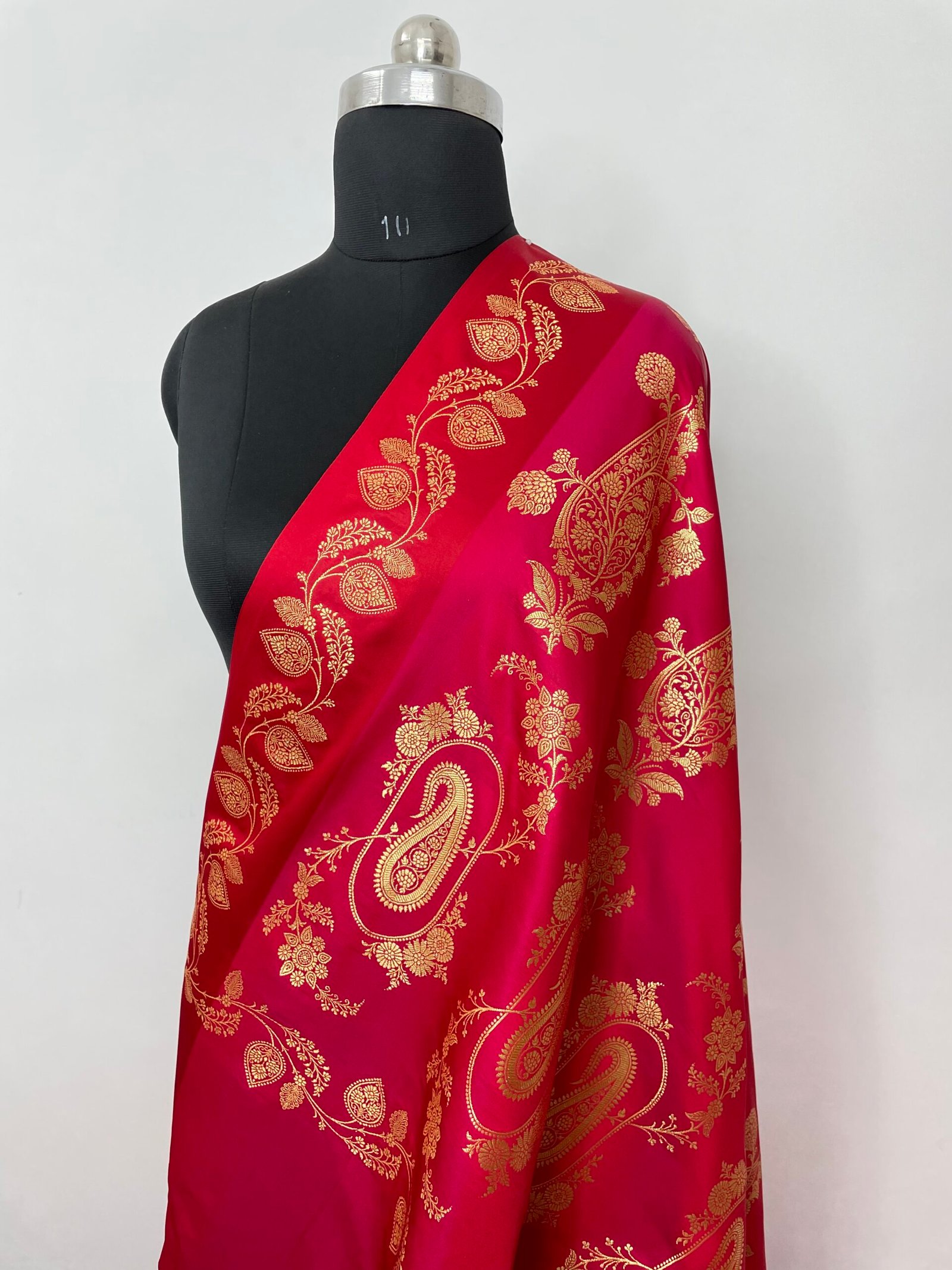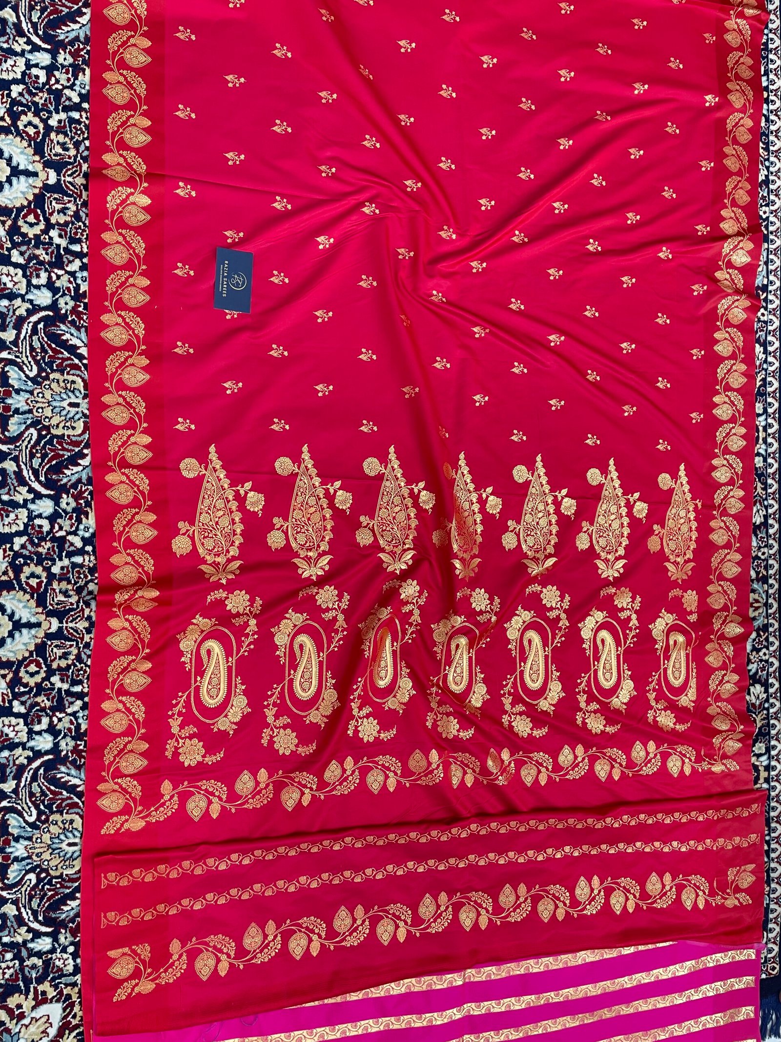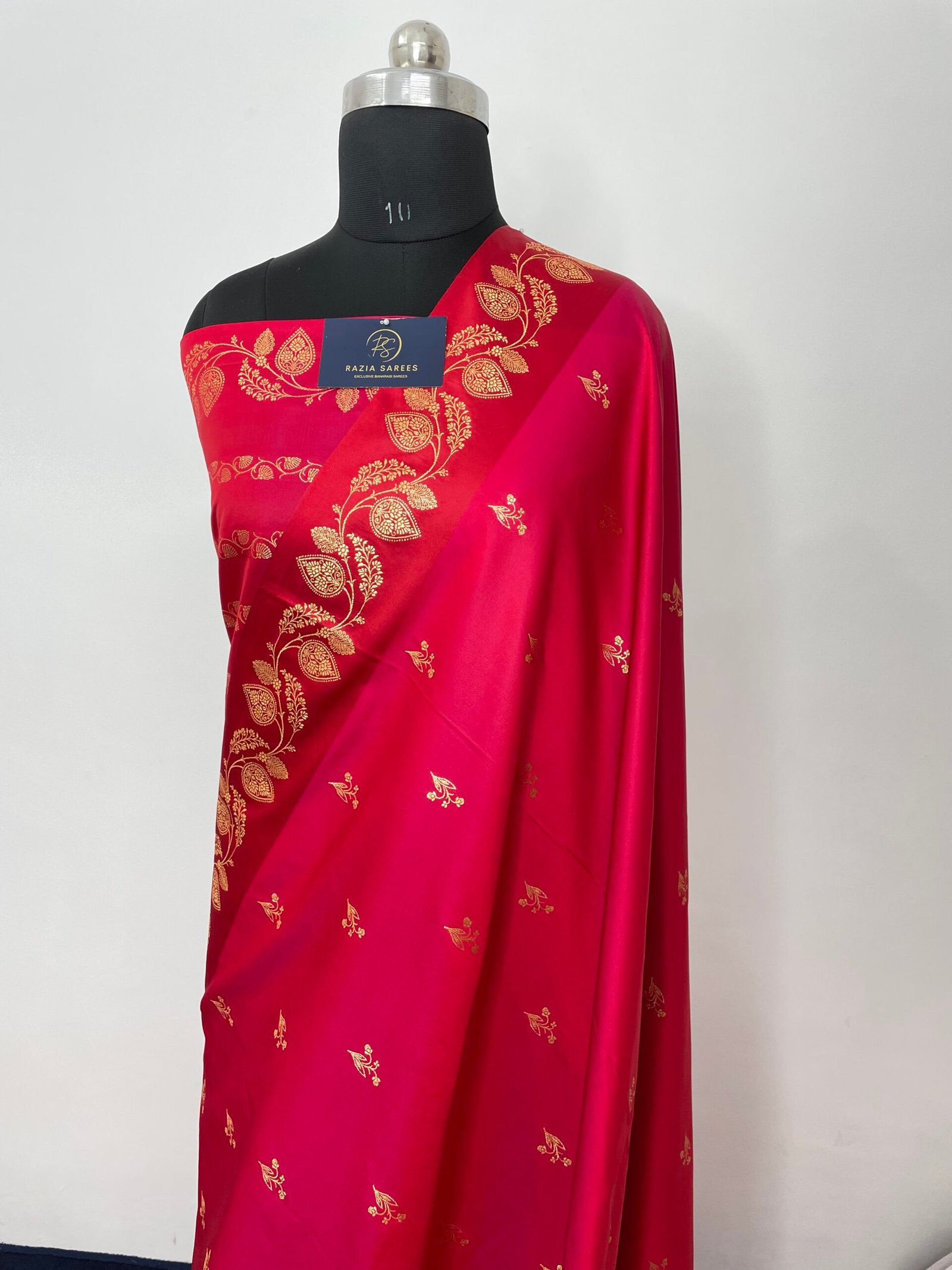 Strawberry Fancy Satan Patta Buti Satin Katan Silk Saree